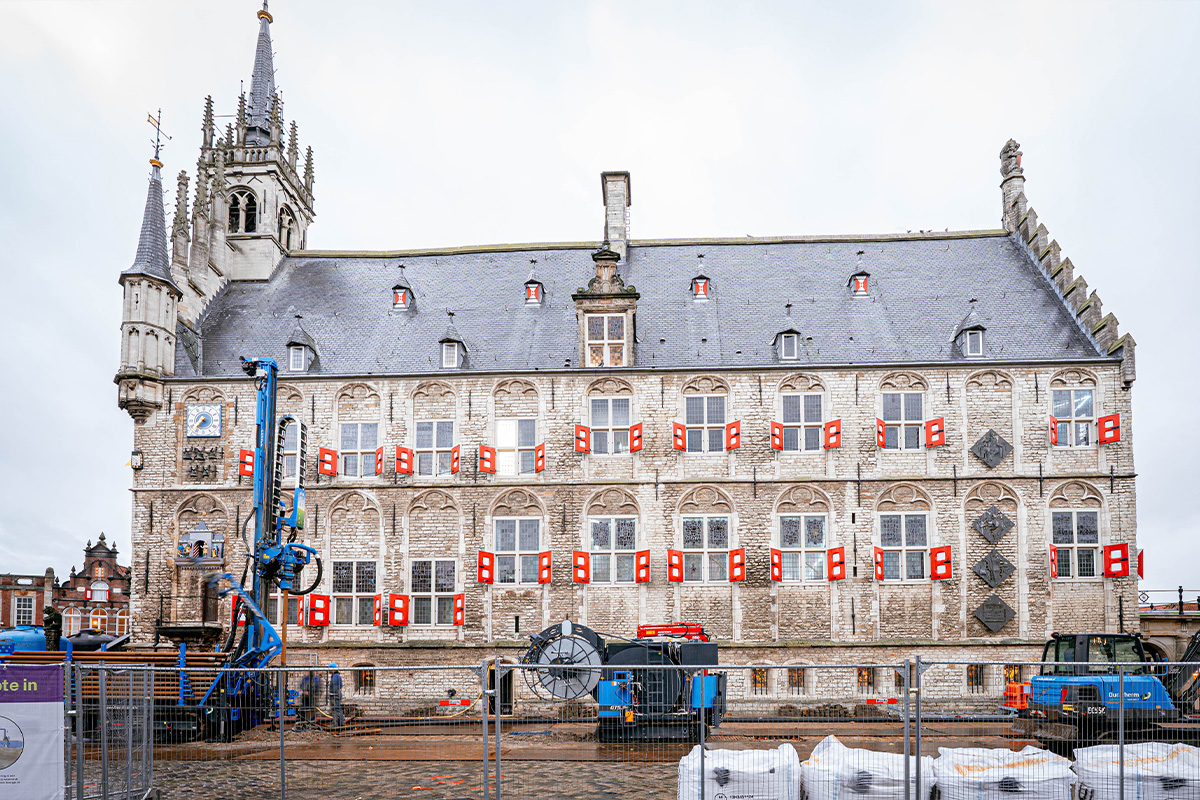 Sommige projecten zijn nét even bijzonderder dan andere en dit is er zeker één: de verduurzaming van het prachtige Stadhuis Gouda. Dit iconische gebouw uit 1450, dat wereldwijd bekendstaat als een van de oudste en mooiste stadhuizen van Nederland, krijgt een nieuwe toekomst. Een toekomst waarin samenleven, ontmoeten, vieren en inspireren centraal staan en waarin duurzaamheid een hoofdrol speelt. Om dit eeuwenoude monument gasloos te maken, wordt het pand voorzien van een moderne warmtepompinstallatie met een bodemwisselaar.